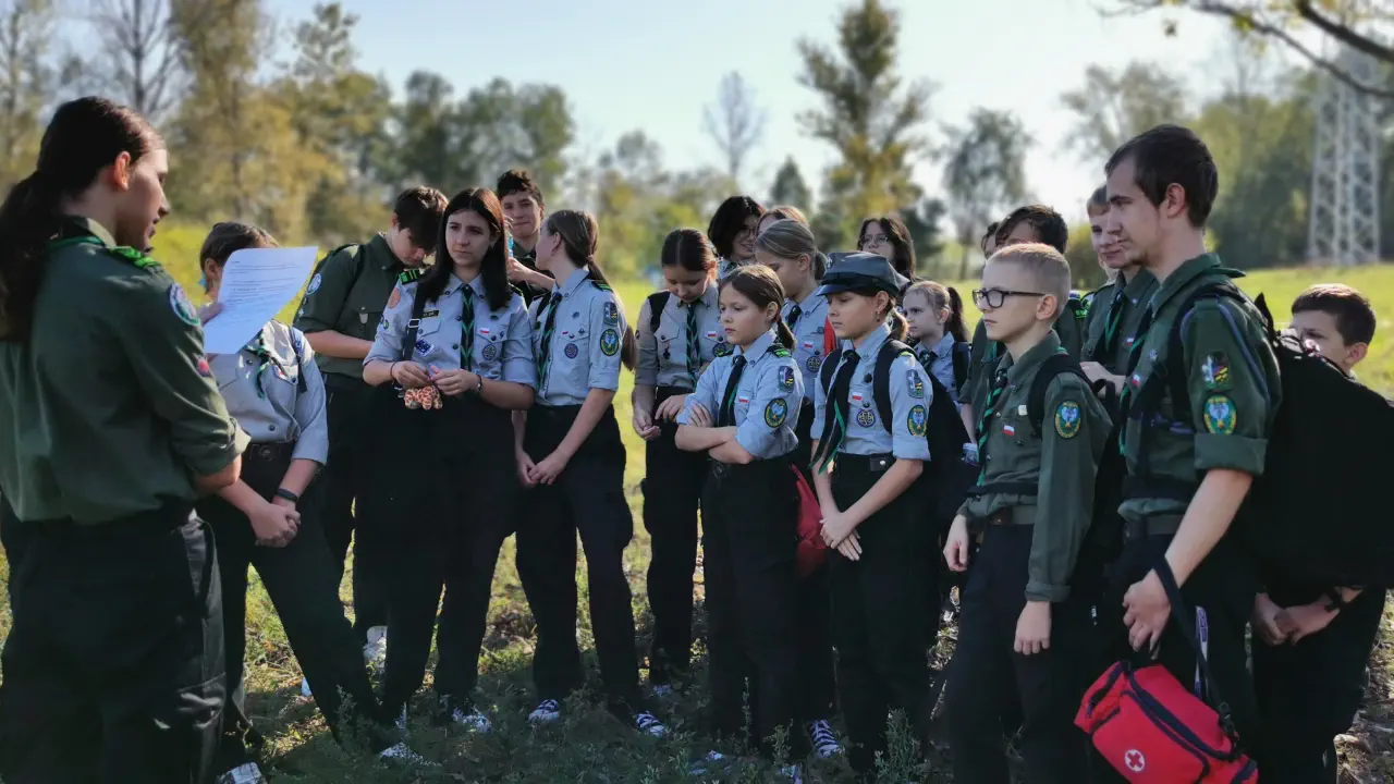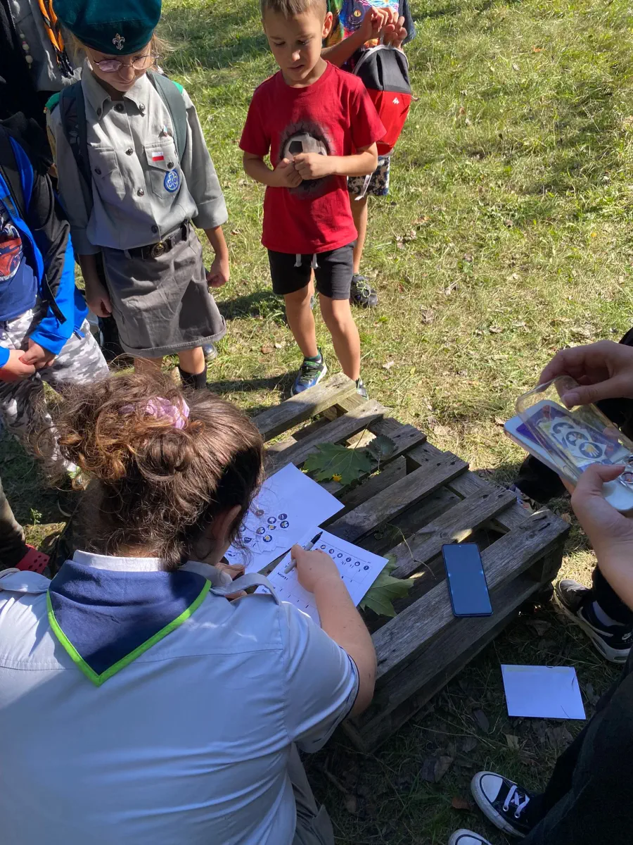 Po apelu przyszedł czas na długo wyczekiwaną grę terenową, która stanowiła jeden z kluczowych punktów programu tego dnia. W grze wzięli udział wszyscy uczestnicy, zarówno zuchy, jak i harcerze, a zadania, które musieli wykonać, były różnorodne i dostosowane do wieku oraz umiejętności każdej z grup. Harcerze musieli wykazać się nie tylko znajomością technik harcerskich, takich jak orientacja w terenie, udzielanie pierwszej pomocy, ale również umiejętnością pracy zespołowej i szybkiego podejmowania decyzji. Gra miała także na celu rozwijanie wiedzy życiowej oraz kreatywności, a dzięki zaangażowaniu wszystkich uczestników stała się wspaniałą okazją do wspólnej zabawy i nauki.